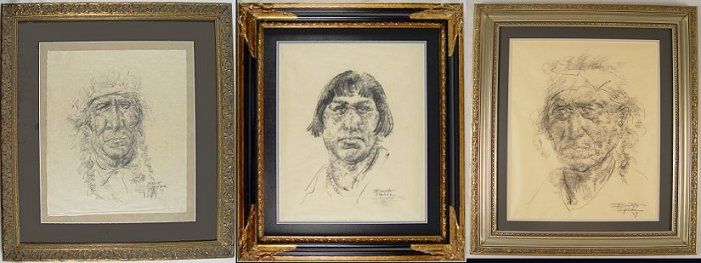 Drawing 3 items, framed