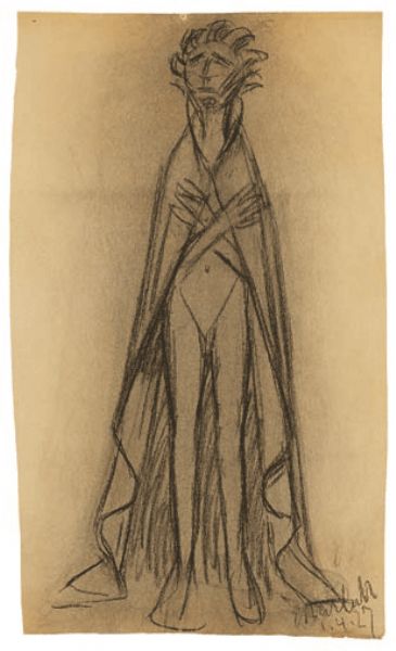 | Stehender Mann mit geöffnetem Umhang (Vorstudie zu »Die Flamme«) | |