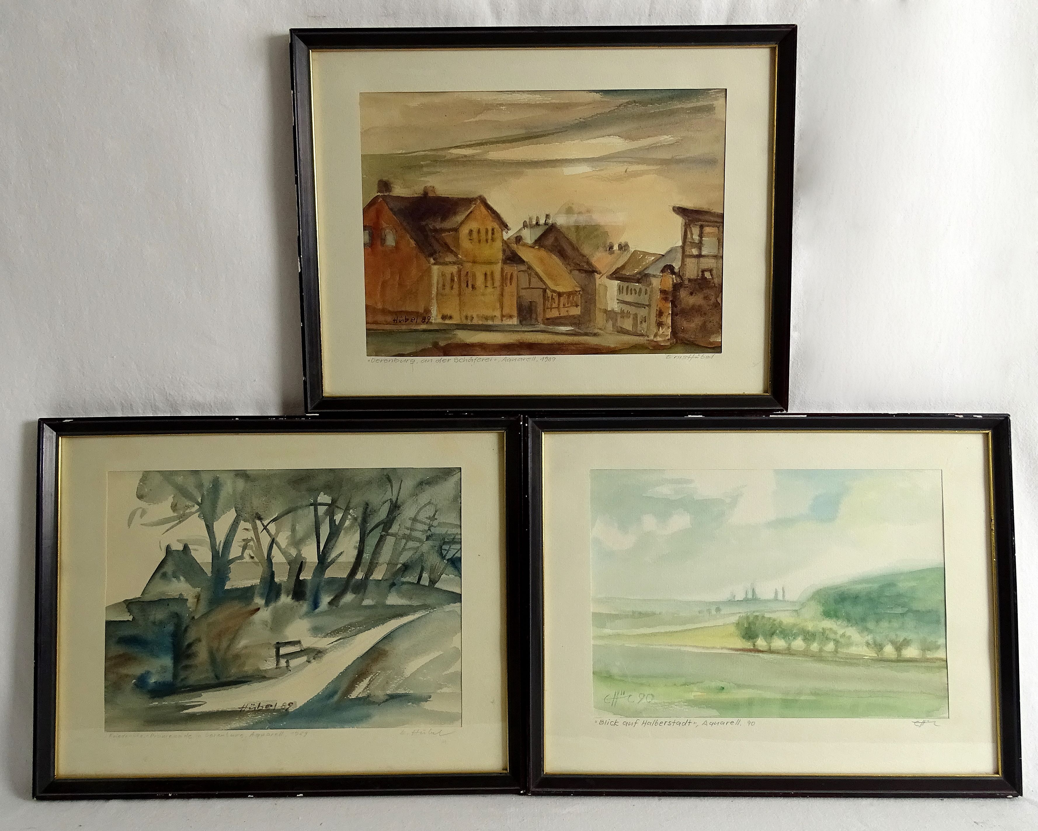 "Friedensstr. - Promenade in Derenburg", "Blick auf Halberstadt" und "Derenburg an der Schäferei"