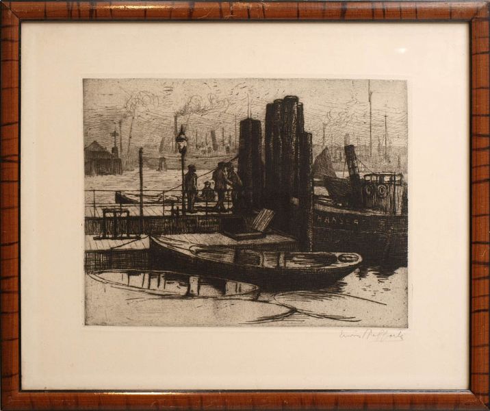 Hafenszene mit Figurenstaffage.