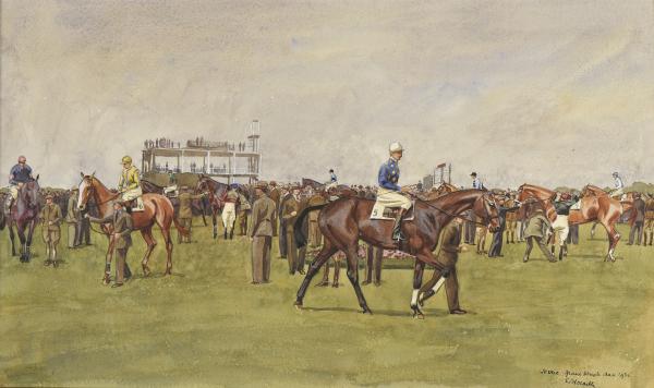 | Padock avant la course, Hippodrome de Saumur-Verrie, grand steeple chase de 1936 | |