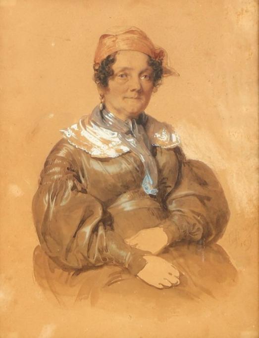 | Portrait assis de femme âgée coiffée d'un fichu rouge | |