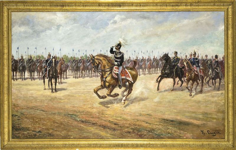 Vittorio Emanuele II in rassegna ai lancieri di Pinerolo