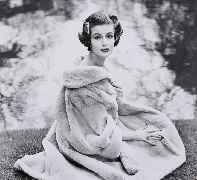 Gitta im beige-farbenen Bibermantel, Frankfurt