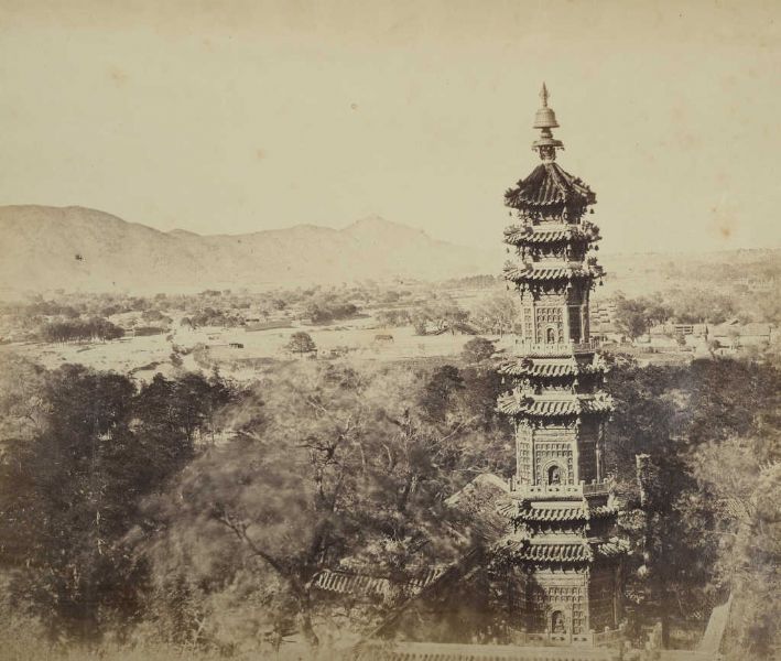 Vue du Palais d’été, Yuen Ming Yuen, montrant la pagode avant l’incendie