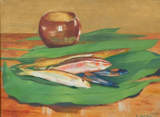 STILL LIFE WITH TROPICAL FISH ON BANANA LEAF
