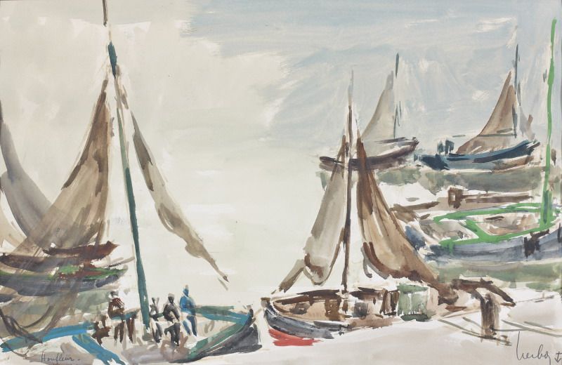 HONFLEUR, BATEAUX DE PECHE A QUAI