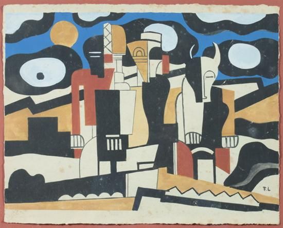 LA VACHE ET LA CHAISE, AN ABSTRACT COMPOSITION WITH A FIGURE AND COW