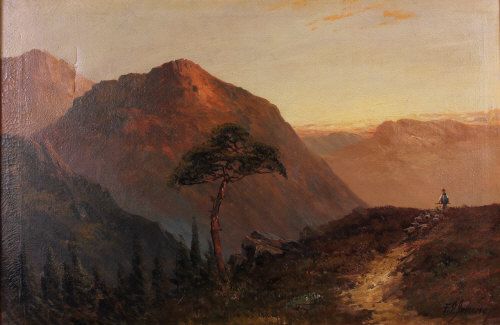 Driving the Sheep, through the mountains, an extensive landscape at sunset