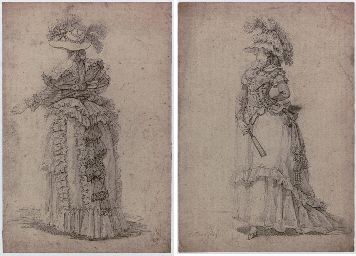 | A fashionable lady seen from behind; and A fashionable lady holding a fan | |