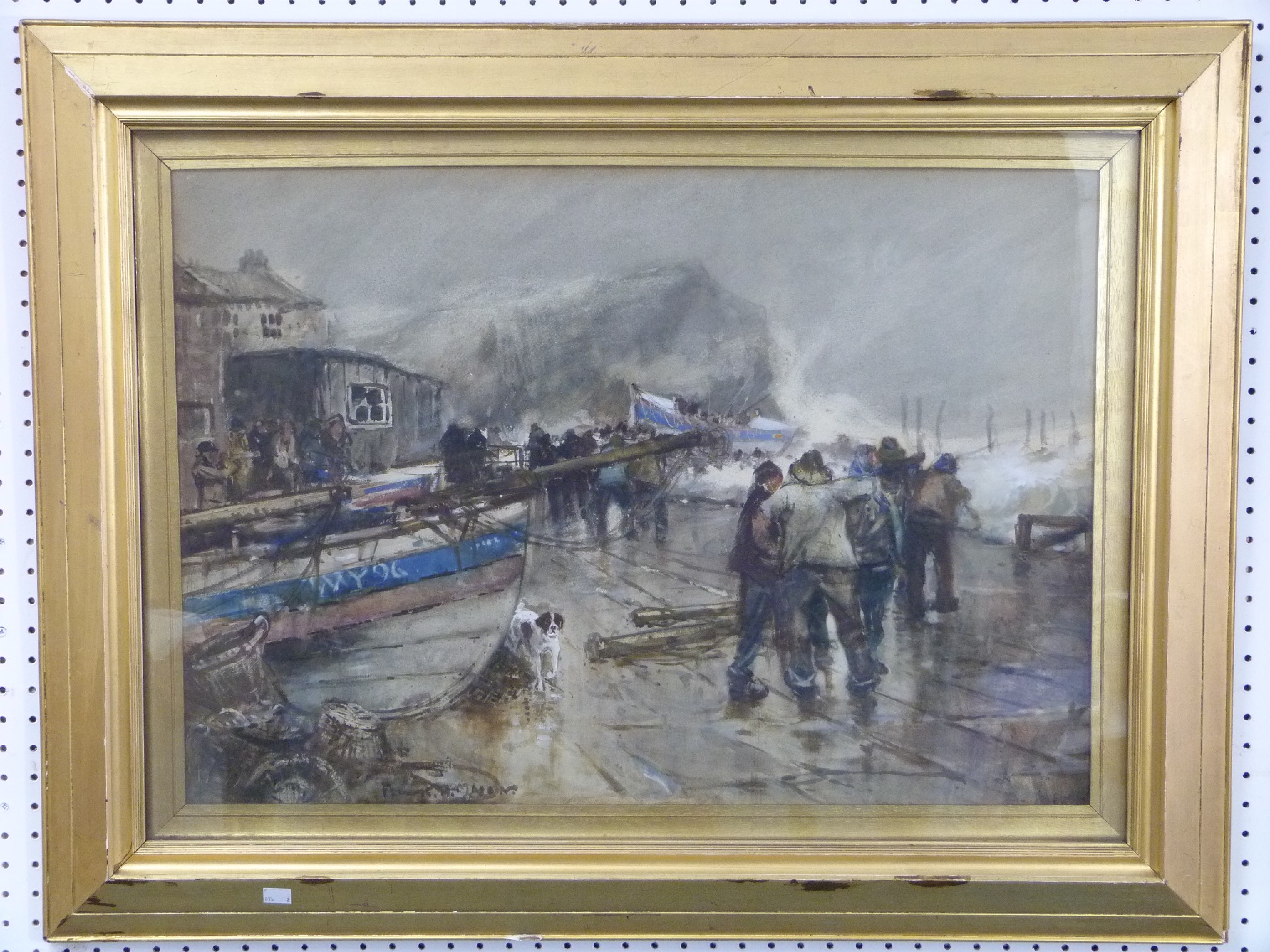 | Stormy Seas and Lifeboat on the Quay, possibly Whitby | |