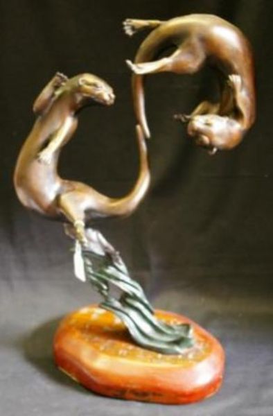 Two otters at play bronze