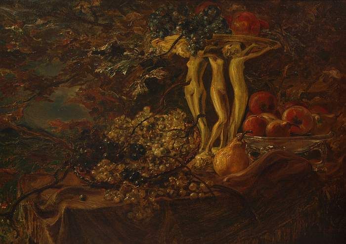 Reiches Früchtestillleben mit Nymphen, Jugendstil.
