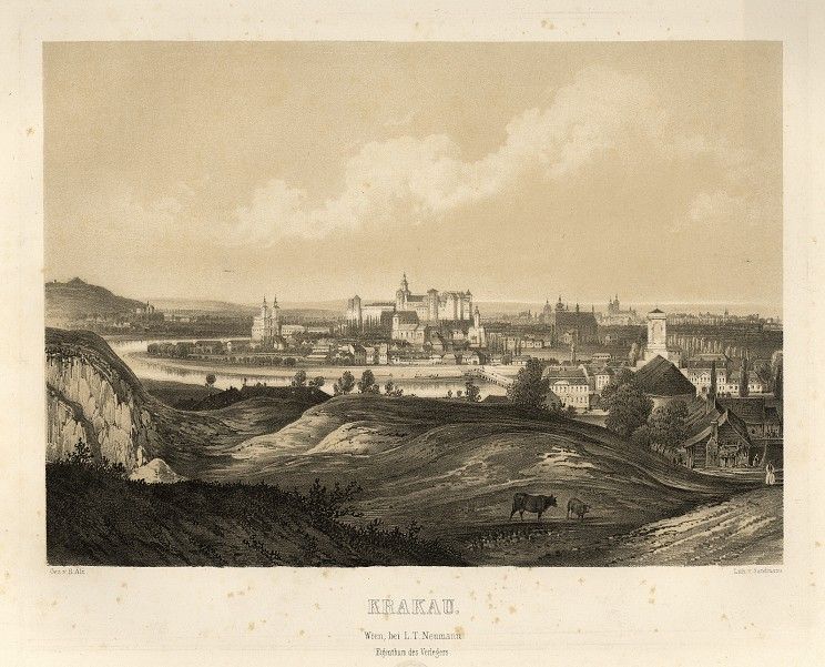 Kraków. Widok z Krzemionek Podgórskich, ok. 1850