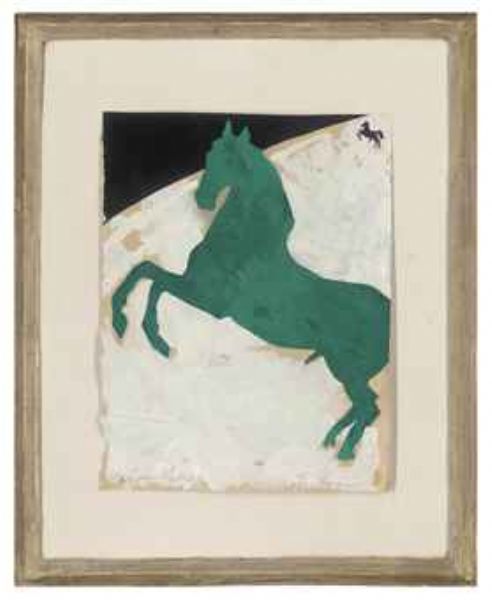 | Acrylic gouache and printed paper collage | |