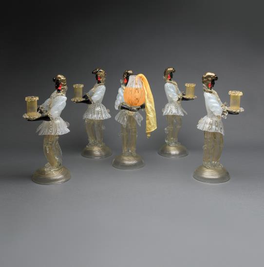 Unknown 5 Murano glass candlesticks, water, food coloring
