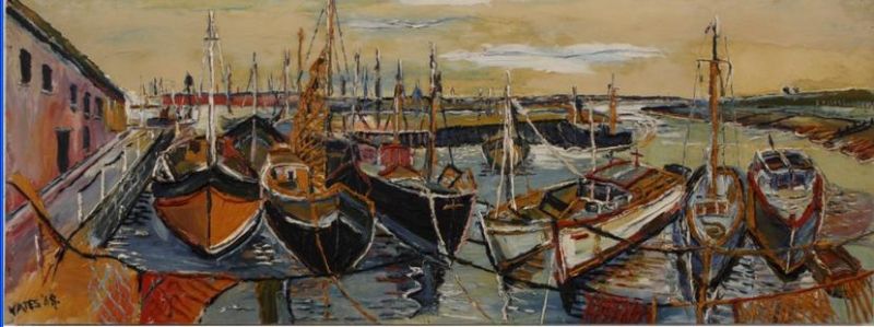 FISHING BOATS IN HARBOUR SCENE