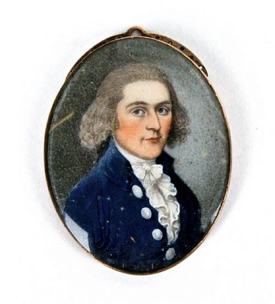 Portrait of a gentleman, wearing a blue coat and white shirt