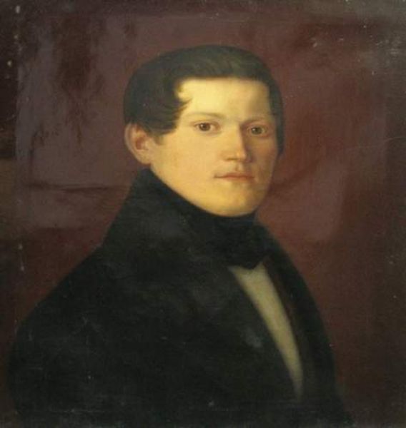 Brustbild eines jungen Herrn in Biedermeiertracht.