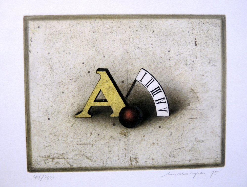 Ohne Titel, Stillleben mit Buchstabe "A" und Kugel
