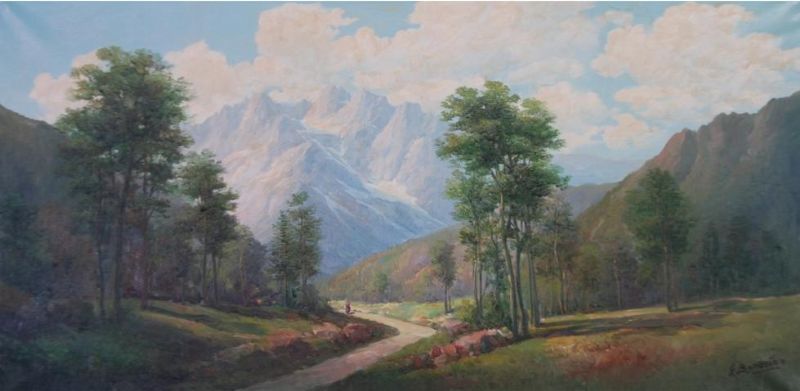 Figures on a path in a mountain landscape 'Bergamo's Area'