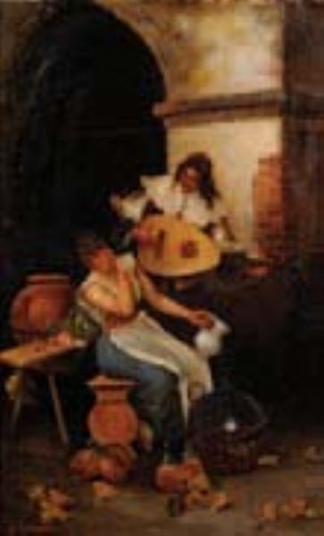 Couples Courting in a cellar interior - a pair