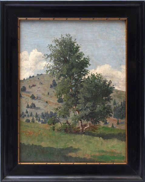 Blick ins Münstertal, im Vordergrund ein große Birke