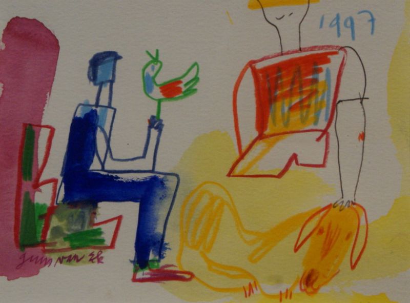 Figuren met hond en vogel