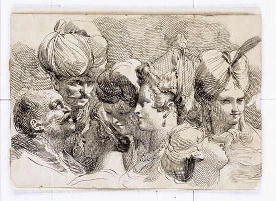 | Studies of Five Female and Two Male Heads, including a Turbaned Man. | |