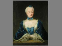 PORTRAIT EINER DAME MIT BLAUER SCHLEIFE
