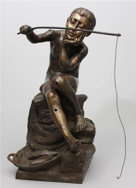 Seltenes Formvorlagenmodell "Angelnder Knabe" der Giesserei Gladenbeck