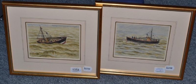 Shipping vessel with figures at sea, together with another similar work