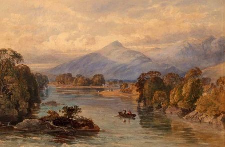 Lakeland Scene with Men Fishing from a Boat, Cattle Beyond