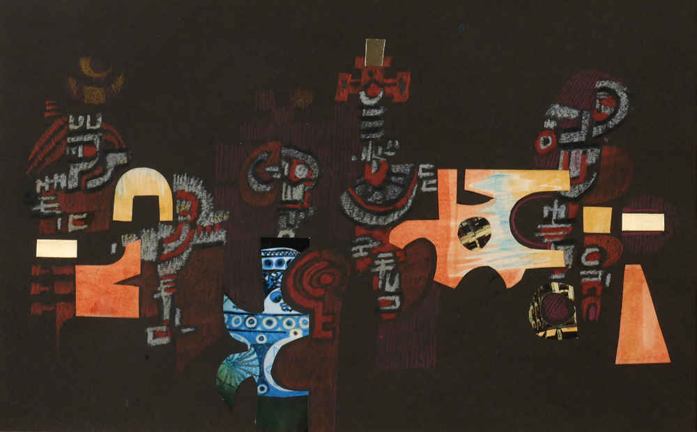 Pastel with collage element on paper
