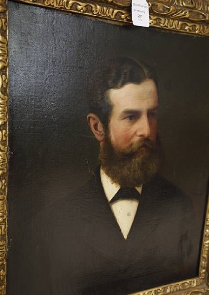 | Portrait of a gentleman bust length, wearing black jacket over white shirt | |