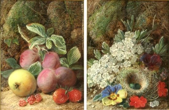 Still lifes of fruit, flowers and a birds nest
