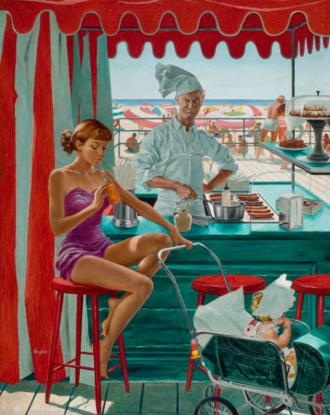 Babysitter at Beach Stand, The Saturday Evening Post cover