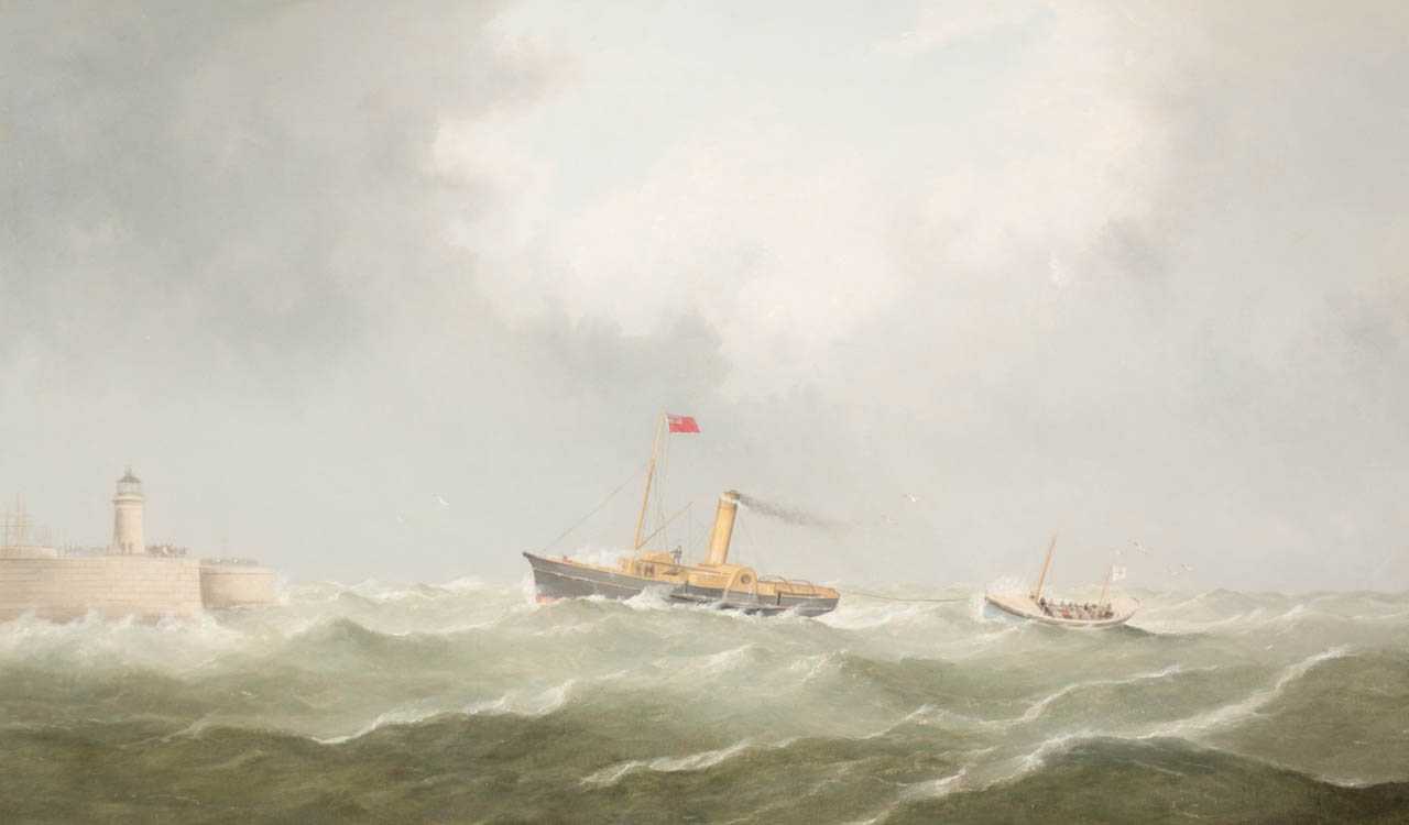 | A Paddle Tug Towing the Life Boat into Newhaven Harbour | |