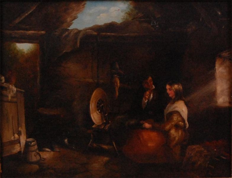 Courtship scene at the spinning wheel