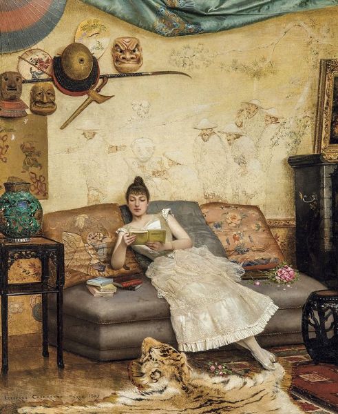 Jeune femme lisant dans un intérieur japonisant (1887)