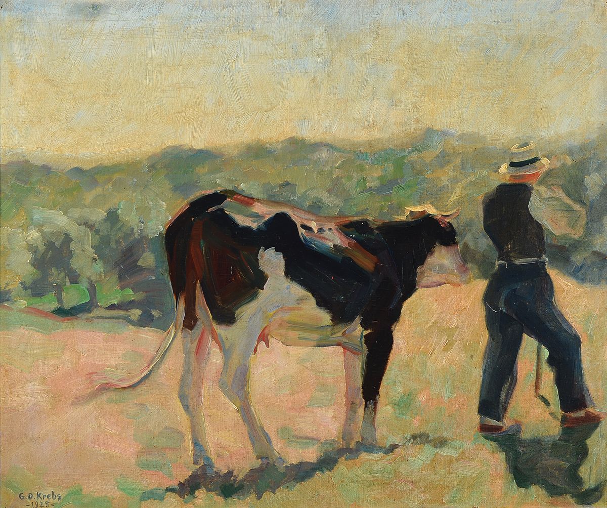 | Studies in Strasbourg and at the academyDüsseldorf with Prof. J. P. Junghanns, here: farmer with cow in summery landscape | |