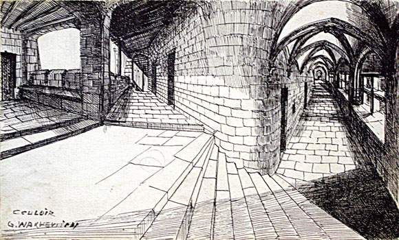 “Couloir”. Dessin pour “Les Visiteurs du soir”.