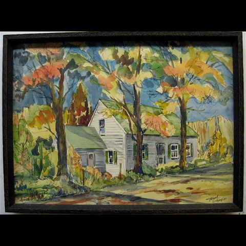 RURAL HOMESTEAD AND SHED WITH GREEN ROOFS; FALL SCENE