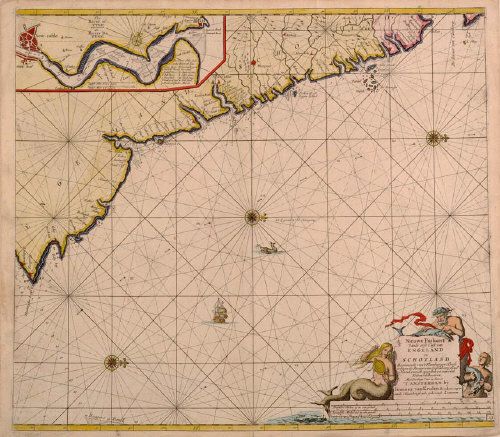 | NIEUWE PASKAERT VANDE OOST CUSTVAN ENGELAND EN SCHOTLAND - A NAVAL CHART OF THE EAST COAST FROM NORTH BERWICK TO FLAMBOROUGH HEA | |
