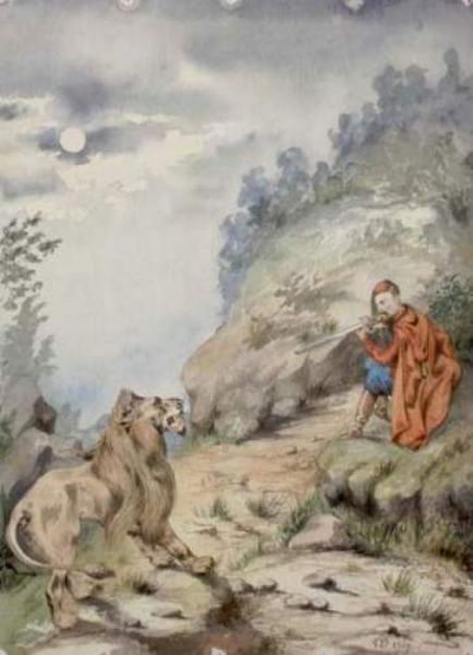 Homme mettant un lion en joue