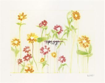 | Silkscreen etching and embroidery on paper | |
