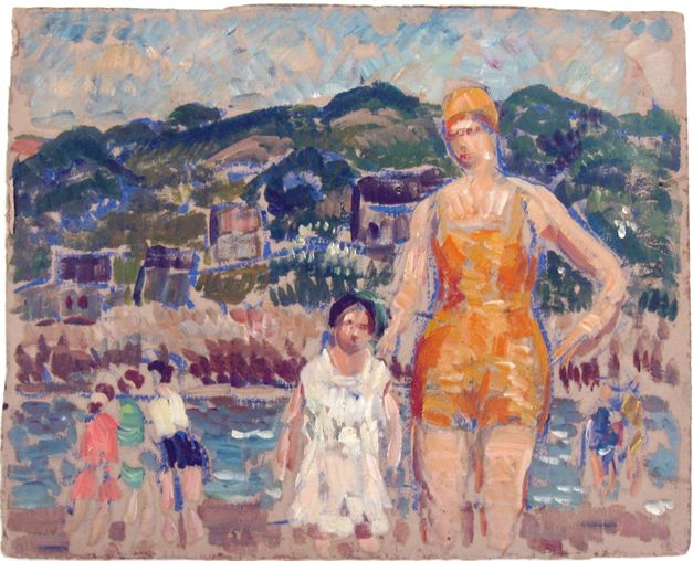 Beach scene and on reverse