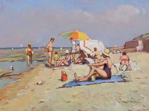 Bagnanti all'Accademia con ombrelloni variopinti, Livorno