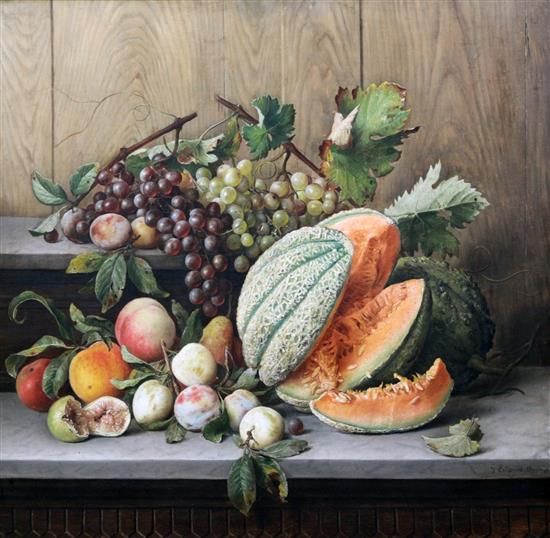 Trompe L'Oeil study, Still life of fruit on a ledge