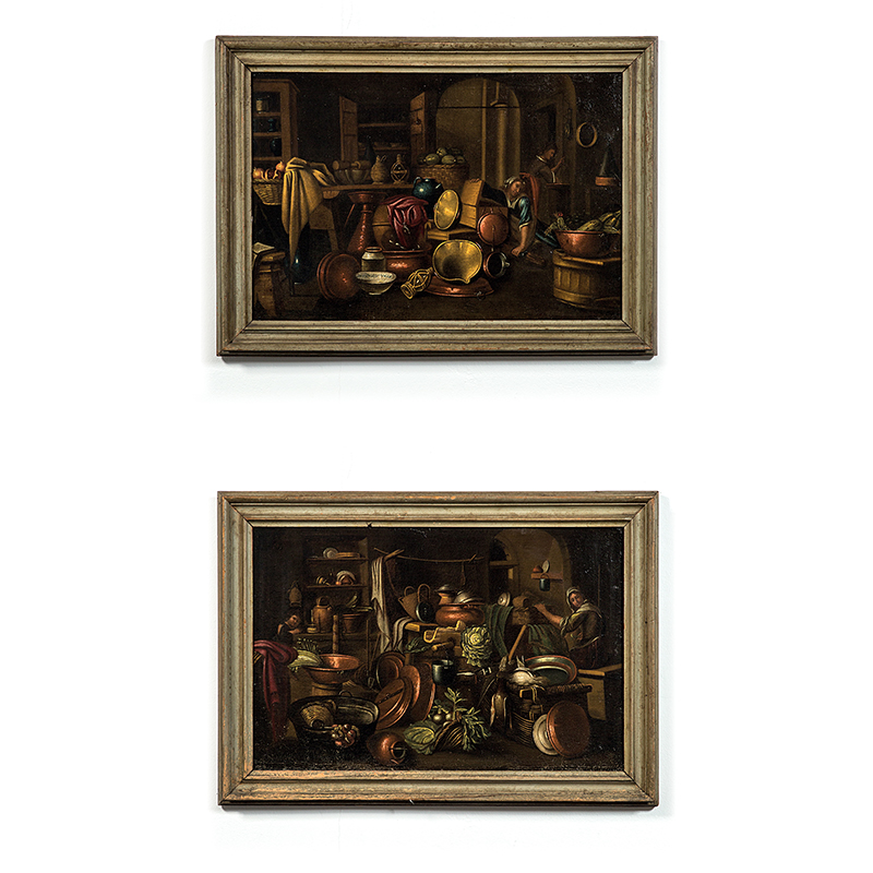 Due interni di cucine con figure